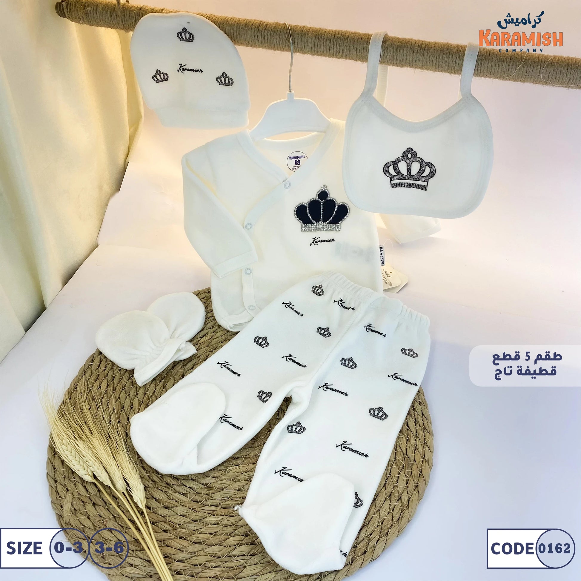 طقم التاج القطيفة 5 قطع – دفء وأناقة لأميرك الصغير! 👑💖
