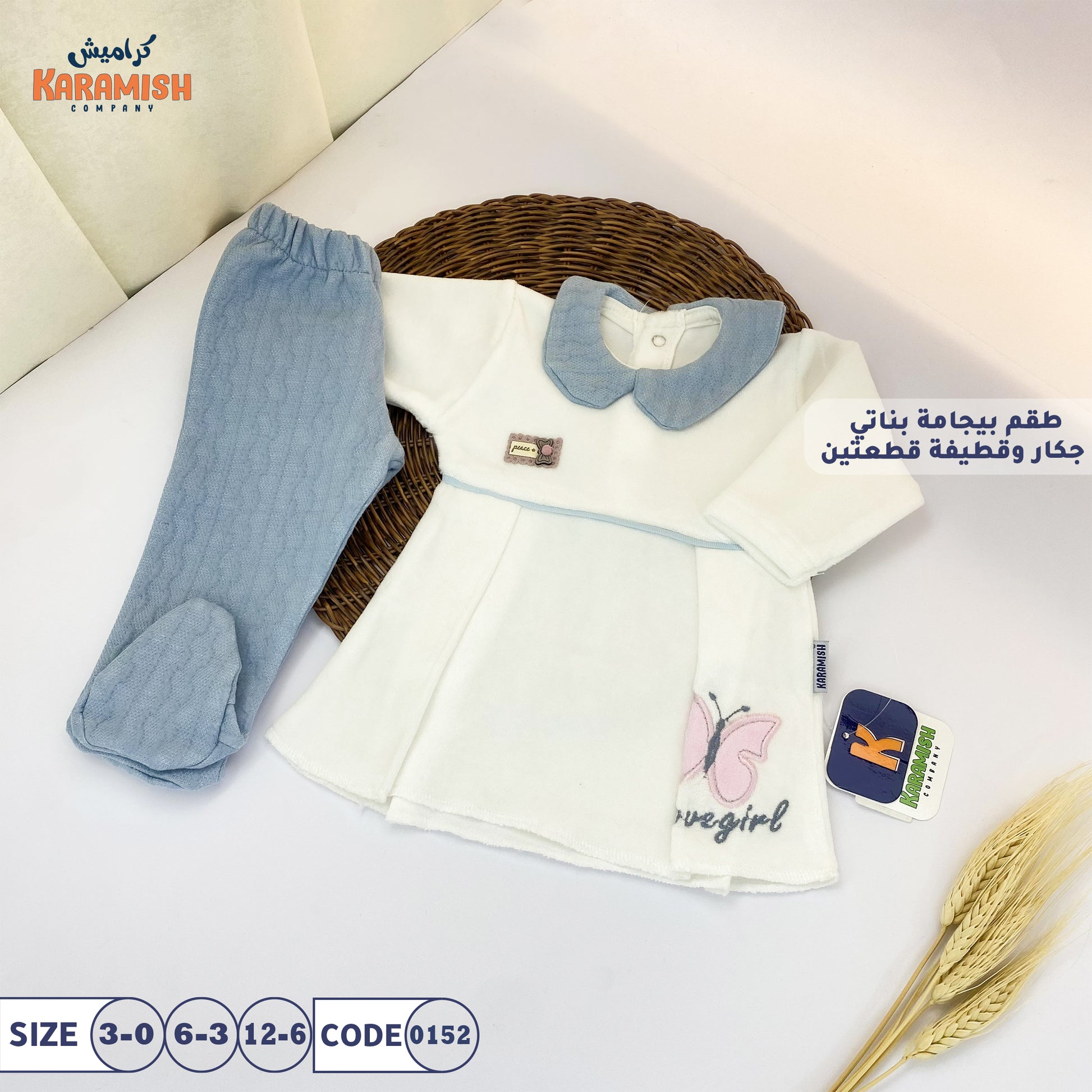 طقم بناتي قطعتين جكار وقطيفة فراشة