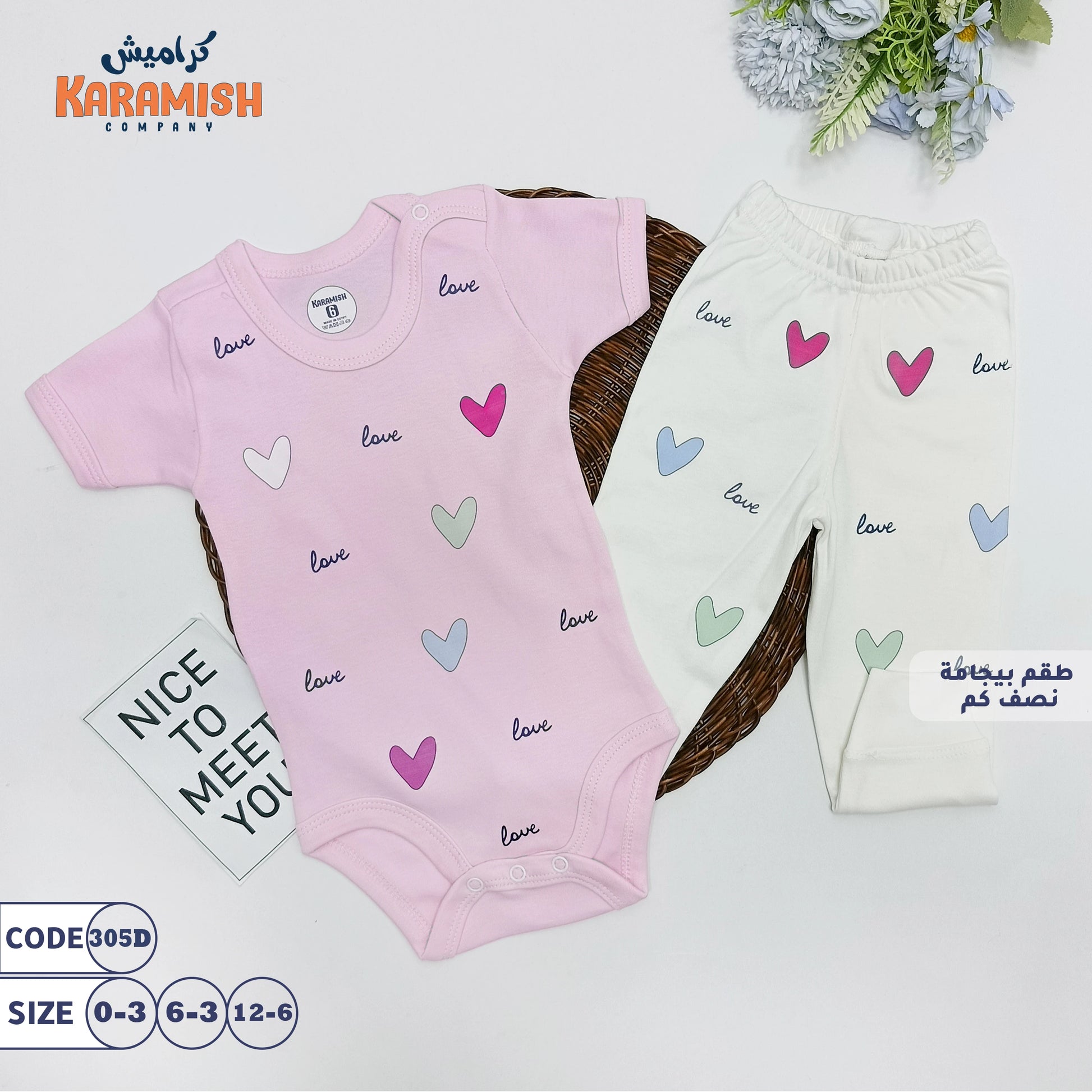 طقم بيجامة نصف كم "قلوب" – نعومة وأناقة لراحة صغيرة! ❤️👶