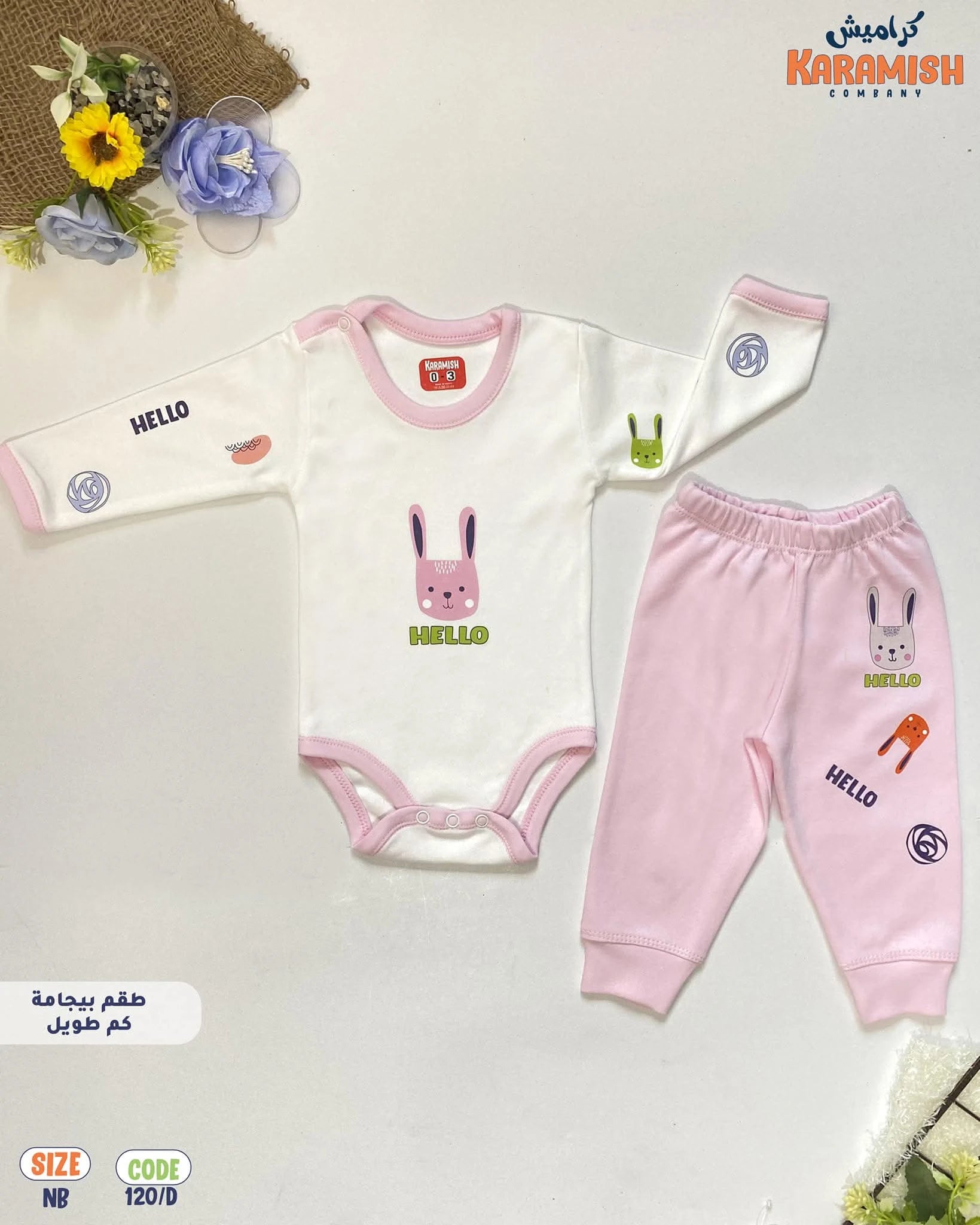 🌿الوصف: بيجامة كم قطن ناعم جدًا على بشرة طفلك