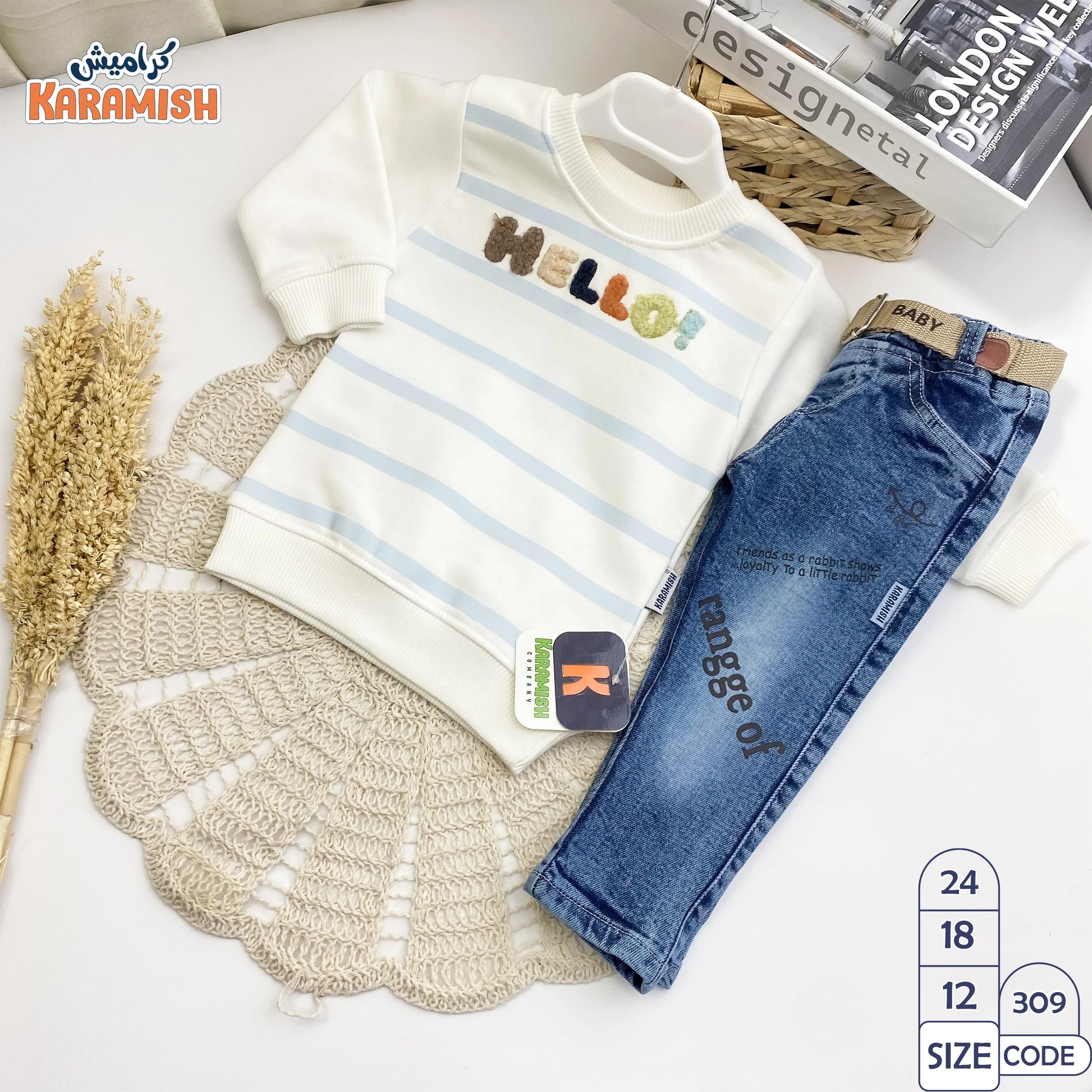 طقم خروج اولادي قطعتين hello